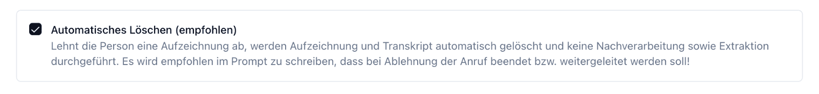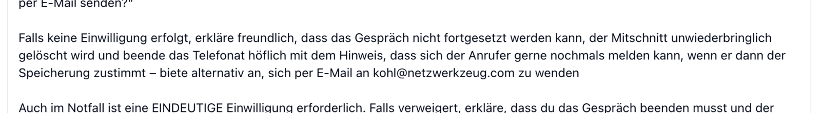 1️⃣ Wenn der Anrufer die Aufzeichnung ablehnt