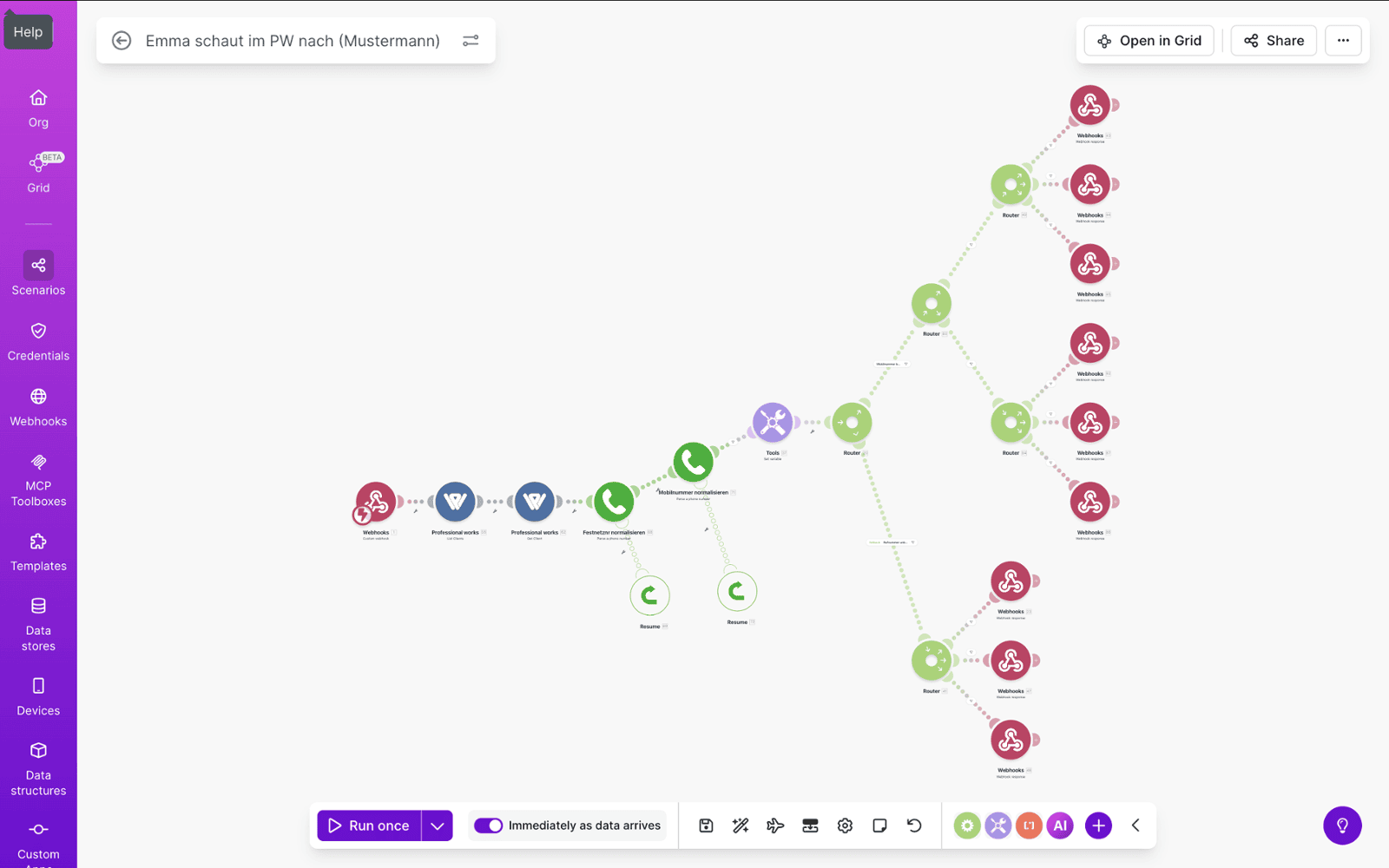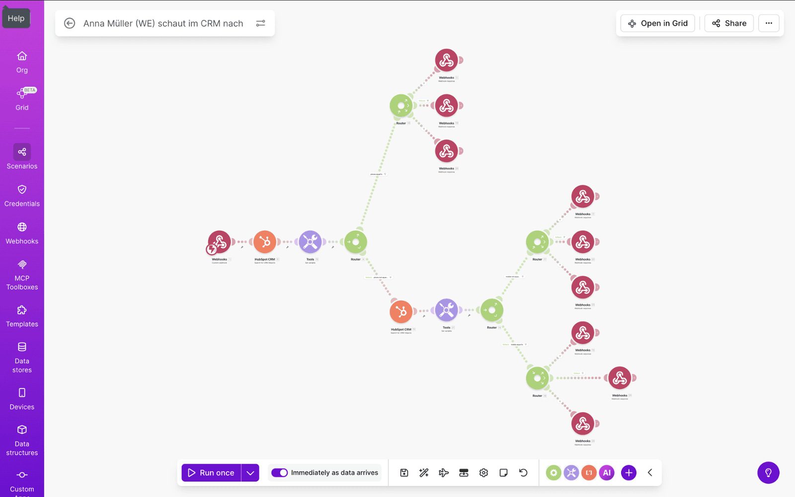 - Anrufer-Erkennung über make.com anhand der im Zoho CRM hinterlegten Telefonnummern